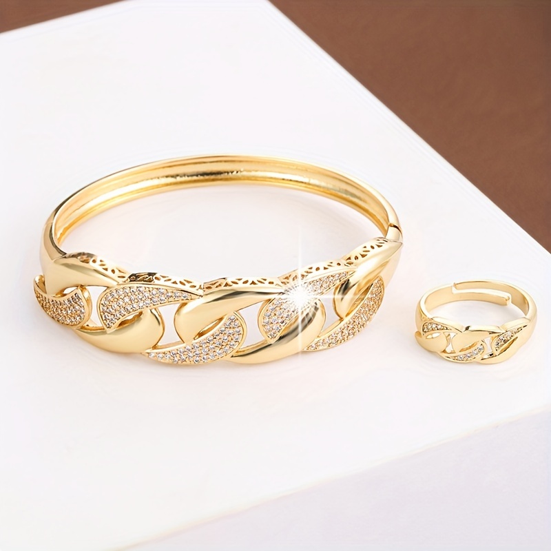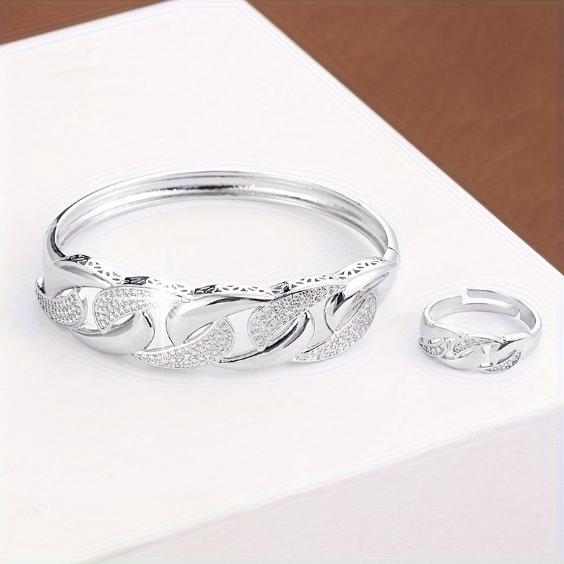 Make a bold statement with this Hip Hop Style Bracelet and Ring Set, crafted from high-quality copper and adorned with dazzling synthetic zircon stones. The striking mosaic design captures light from every angle, adding an edgy, urban-inspired sparkle to your everyday look.